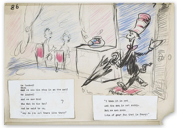 Like Norman Rockwell, Dr. Seuss created every rough sketch, preliminary drawing, final line drawing, and finished work for each page of every project he illustrated.