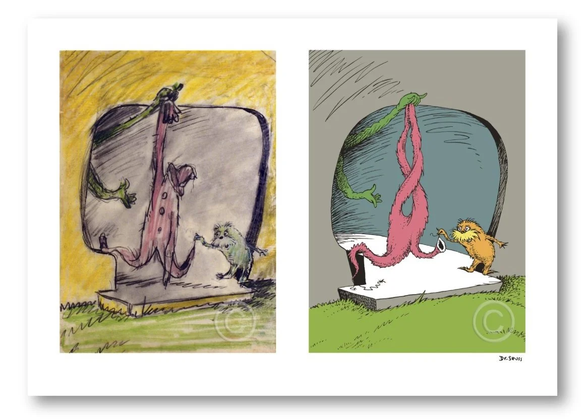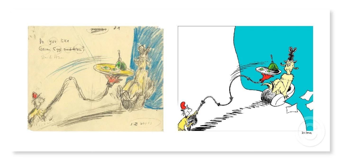 Ted Geisel drew each page for every Dr. Seuss book he wrote. What many people don’t realize is that for each final-line drawing, he would create multiple concept drawings leading up to the final published image.